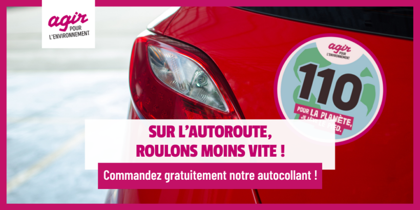 En cette période de transhumance estivale, l’ONG Agir pour l’environnement recommande une limitation de vitesse volontaire sur les autoroutes et lance un autocollant avec le slogan : « 110 Pour la planète, je lève le pied ! »