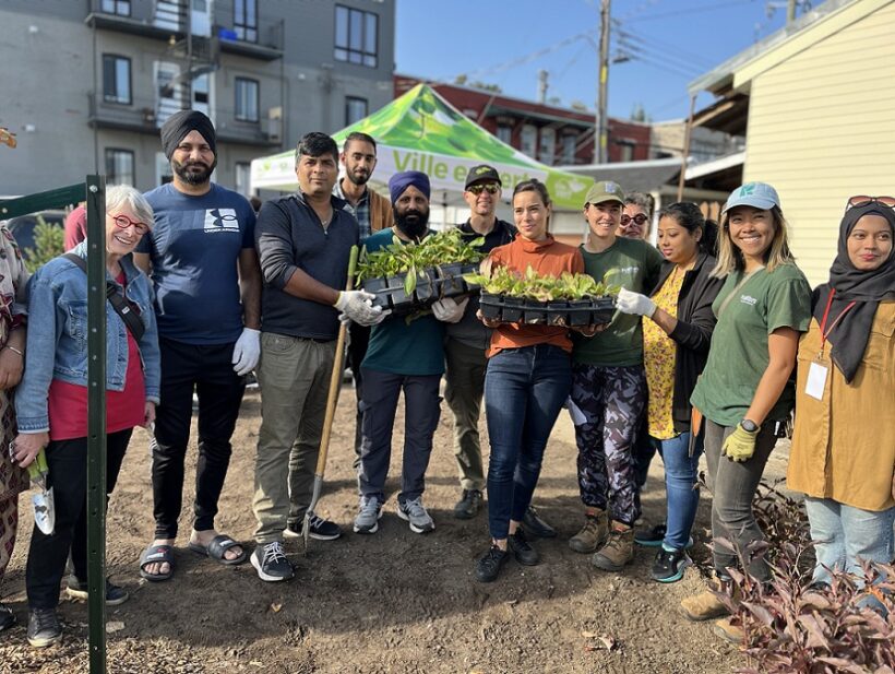 En effet, samedi 30 septembre, plusieurs citoyens et citoyennes du quartier Parc-Extension se sont rassemblés au coin des rues Jarry et Durocher pour participer à la plantation d’arbustes et de plantes sur un terrain abonné qui servait de dépotoir communautaire jusqu’à la semaine dernière.