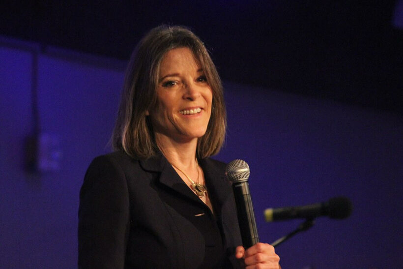 Williamson est cofondatrice de l’Alliance pour la paix et se présente pour la deuxième fois aux primaires du Parti démocrate.