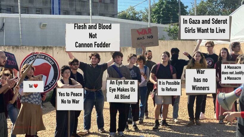 Elle a été accompagnée de manifestants du réseau Mesarvot, qui soutient les objecteurs de conscience politiques, et de Tal Mitnick, le jeune de 18 ans qui a refusé dimanche son service militaire pour la troisième fois, après avoir purgé 60 jours de prison pour deux condamnations.