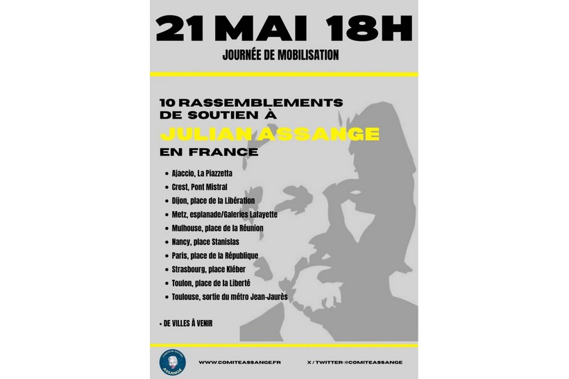 Des rassemblements pour Julian Assange se tiendront un peu partout en France le mardi 21 mai, au lendemain de l’audience décisive à Londres. Si la Haute Cour estime que l’ultime appel du fondateur de WikiLeaks au Royaume-Uni est irrecevable, l’extradition pourrait avoir lieu dans la foulée.