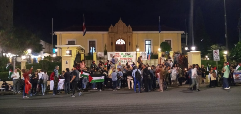 Veillée en mémoire des victimes palestiniennes de Gaza, organisée devant le Ministerio de Relaciones Exteriores y Culto du Costa Rica, San José, Costa Rica, le 2 novimbre 2023. Photo partagée par la Red de Solidaridad con Palestina / Costa Rica.