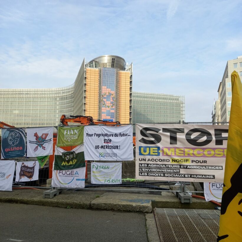 Jean, jeune agriculteur français nous résume : « cet accord va mettre sur le marché des produits dont on a pas besoin, cultivés par des pays hors Europe, qui n’ont pas les mêmes contraintes« . Il confirme : cet accord commercial, tout comme ceux proposés par la PAC (Politique Agricole Commune) depuis 2019 sont fondamentalement injustes et non-solidaires.  Ils ne peuvent être aménagés ; ils doivent être refusés. Il faut revenir à l’origine du sens de la PAC, nous précise-t-il,  qui est celle de réguler les marchés et de proposer par exemple des subventions pour compenser le coût élevé des productions de petites fermes locales. Aujourd’hui, ces subventions servent  la production industrielle qui bénéficient de mécanismes inadaptés.