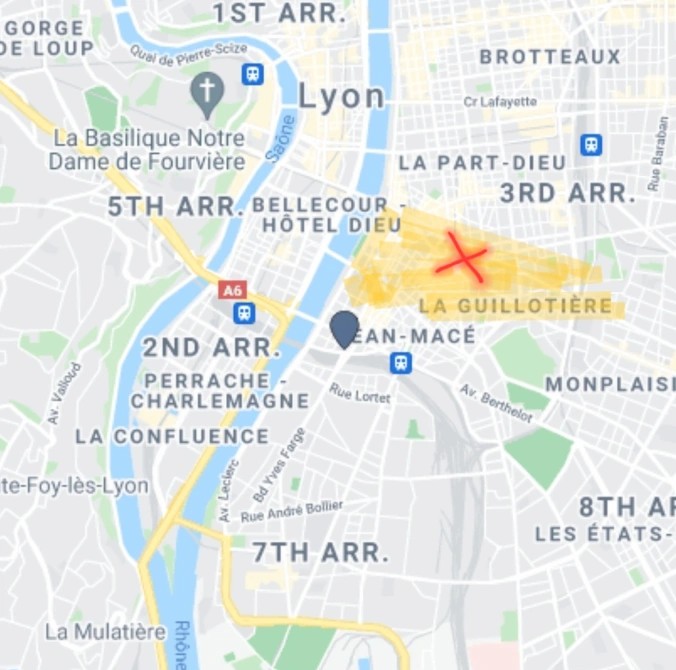 Le quartier qui nous intéresse aujourd’hui se situe à Lyon, dans le département du Rhône, en France. La Guillotière est ce quartier situé dans le 7ème arrondissement lyonnais, au centre de la ville, entre la rive gauche du Rhône, le quartier de la préfecture, le grand parc Blandan et le chemin de fer de la gare Jean Macé. Le conseil de quartier de la Guillotière est officiellement délimité à l’ouest par le Rhône, au nord par le cours Gambetta, à l’est par le boulevard des Tchécoslovaques et au sud par la rue de l’Université, la rue Marc-Bloch, la rue Domer, la rue du Repos et la rue de l’Épargne (voir l’image ci-dessous).