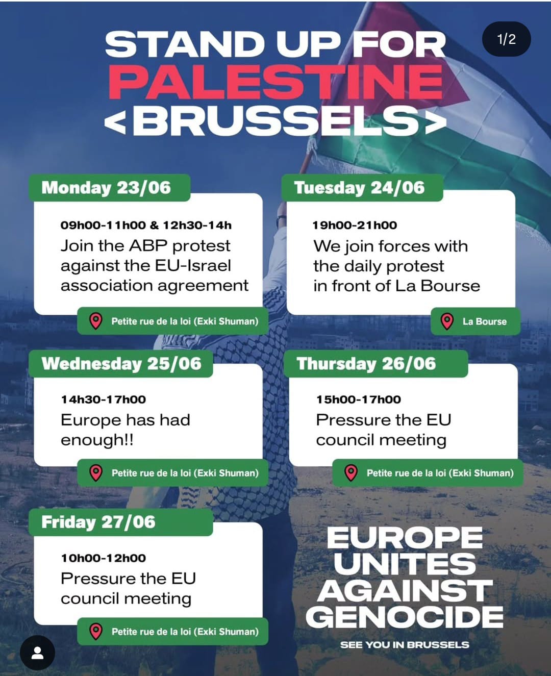 Ce jeudi 26 juin 2025 et aujourd’hui 27, la mobilisation de la Marche mondiale pour Gaza se poursuit à Bruxelles. Une lettre ouverte (voir le lien en bas du texte) a été rédigée, adressée aux chefs d’État et de gouvernements européens tels que Mme Callas, représentante de l’Union pour les affaires étrangères, Ursula Von der Leien, présidente de la Commission, Antonio Costa, président du Conseil européen et Roberta Meztola, présidente du Parlement.