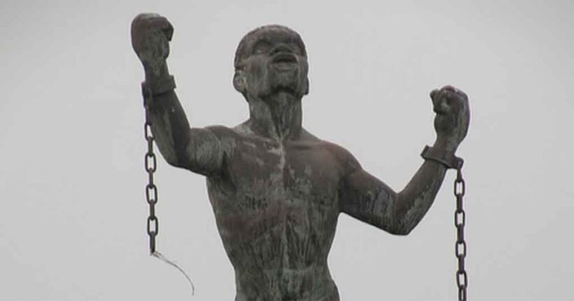 Inaugurée le 28 mars 1985, la « Statue de Bussa » représente un esclave enchaîné brisant ses liens, symbolisant la résistance en hommage au chef de la plus grande rébellion d’esclaves contre le colonialisme anglais sur l’île.