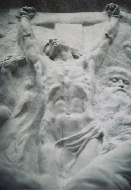 La controverse:Le relief a suscité un scandale immédiat à sa présentation en 1899, en raison de sa représentation explicite des plaisirs charnels, de la nudité des corps et de la présence du Christ crucifié sous un angle peu conventionnel, ce qui fut jugé offensant par la société belge conservatrice de l’époque.