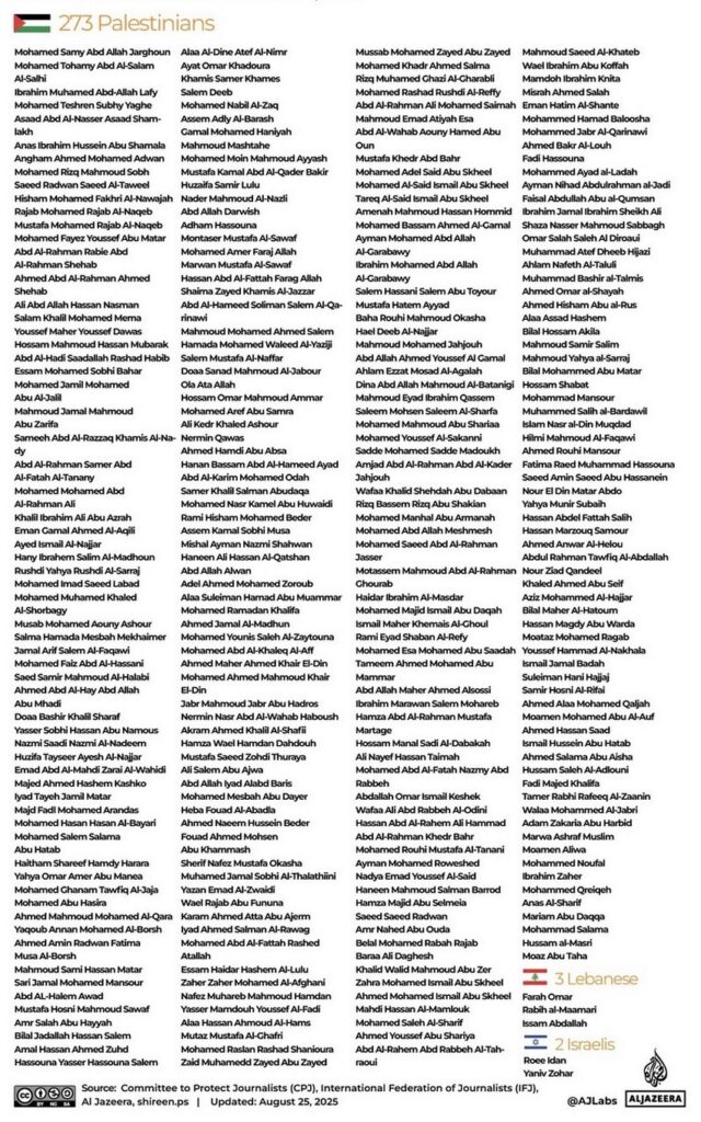 Au moins 278 journalistes et membres des médias, en majorité des Palestiniens, ont été tués dans la guerre qu’Israël mène à Gaza.