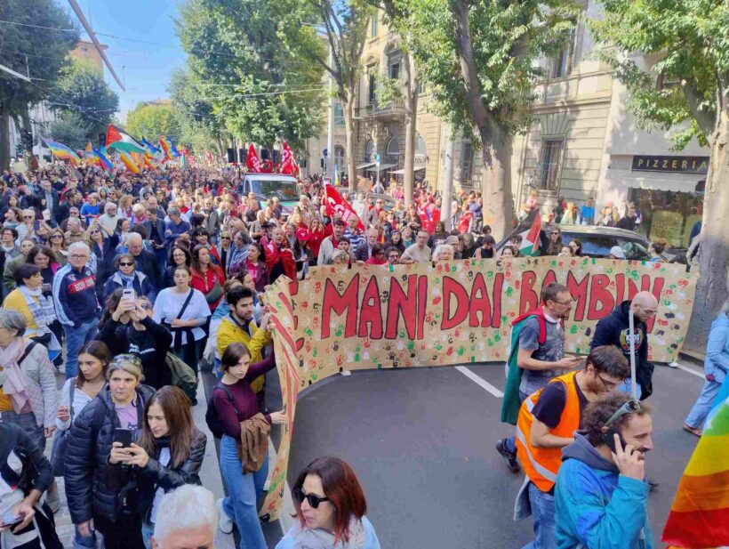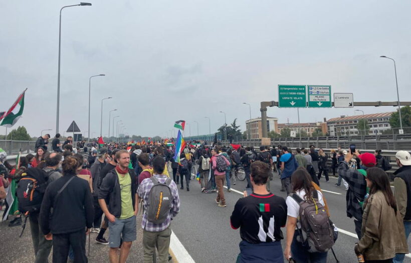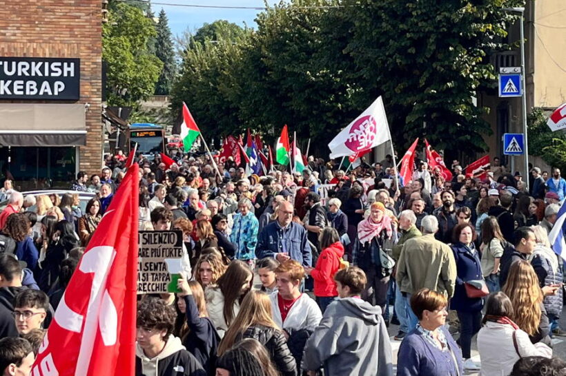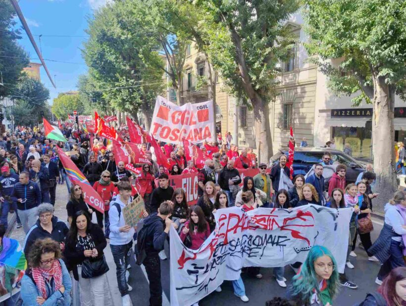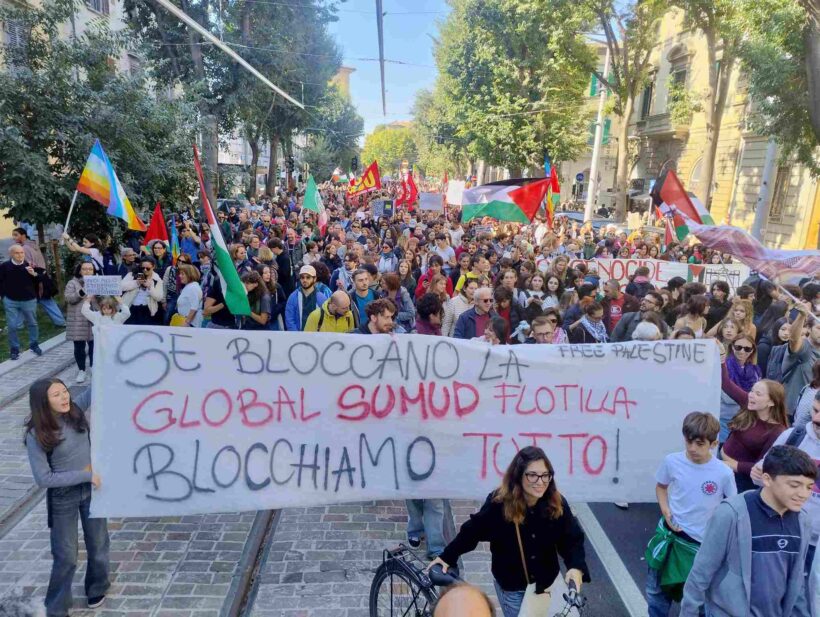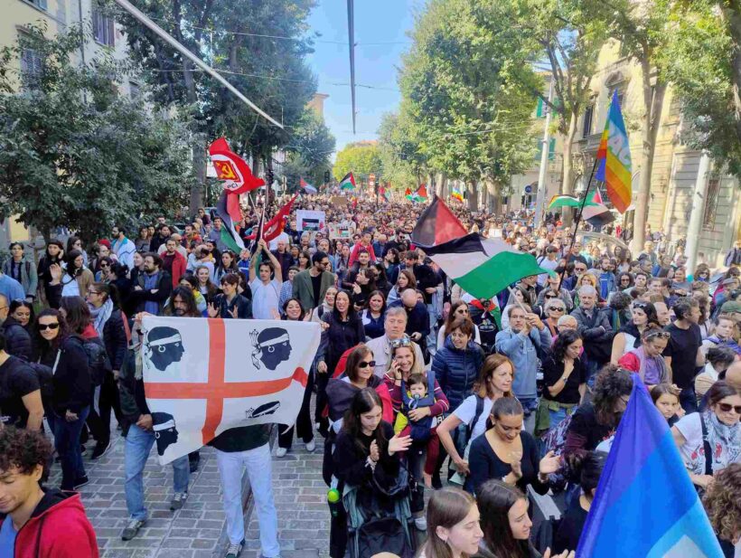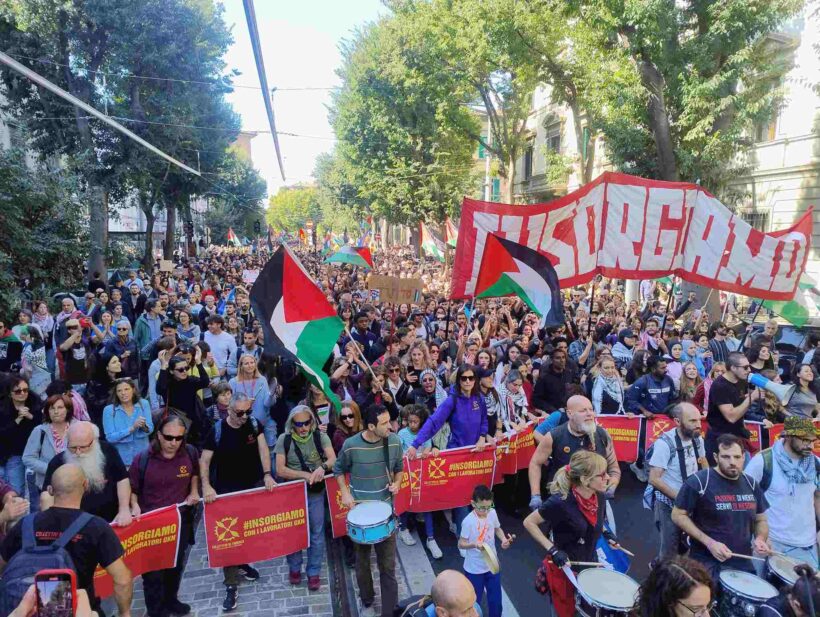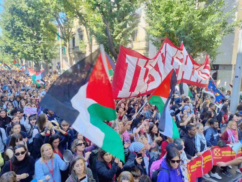 La grève générale pour Gaza, appelée par les syndicats Unione Sindacale di Base USB, Confederazione Unitaria di Base CUB, le Comitati di Base COBAS et la Confederazione Generale Italiana del Lavoro CGIL, a eu lieu ce vendredi 3 octobre dans toute l’Italie. De nombreuses manifestations ont eu lieu à Cagliari, Florence, Milan, Rome, Turin, Sassari, Trieste, Bologne, Bergame, Varèse, Salerne, Naples, Catanzaro, Vérone, entre autres.