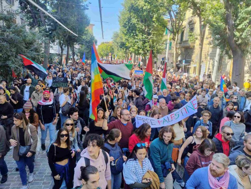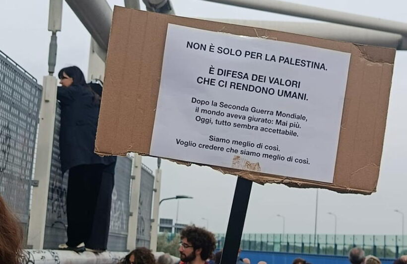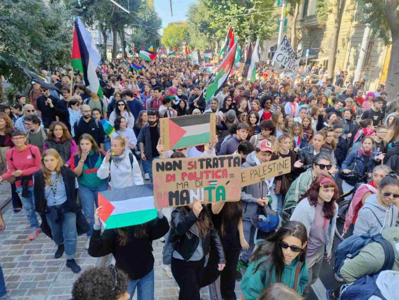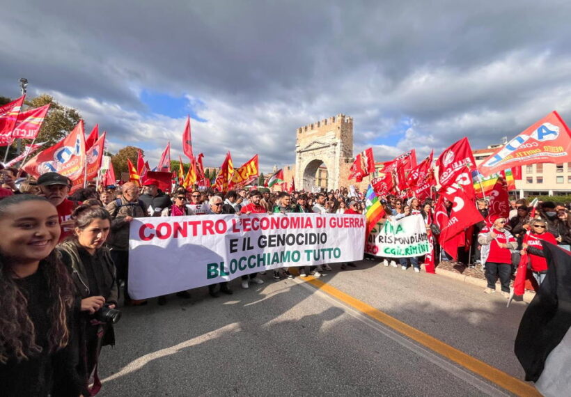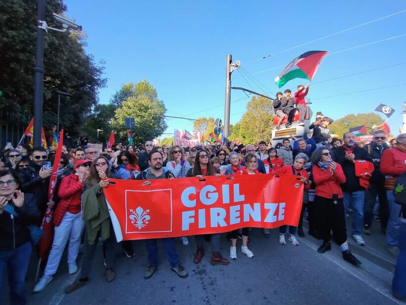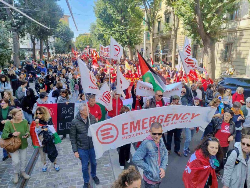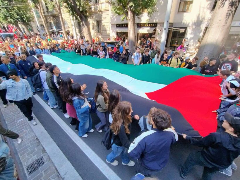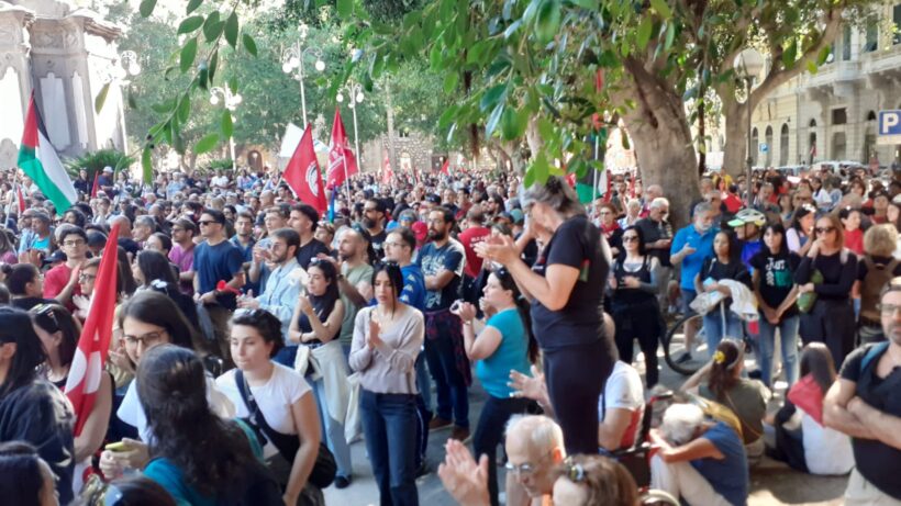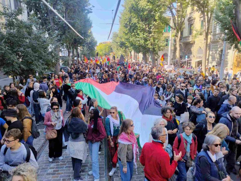 La grève générale pour Gaza, appelée par les syndicats Unione Sindacale di Base USB, Confederazione Unitaria di Base CUB, le Comitati di Base COBAS et la Confederazione Generale Italiana del Lavoro CGIL, a eu lieu ce vendredi 3 octobre dans toute l’Italie. De nombreuses manifestations ont eu lieu à Cagliari, Florence, Milan, Rome, Turin, Sassari, Trieste, Bologne, Bergame, Varèse, Salerne, Naples, Catanzaro, Vérone, entre autres.