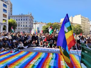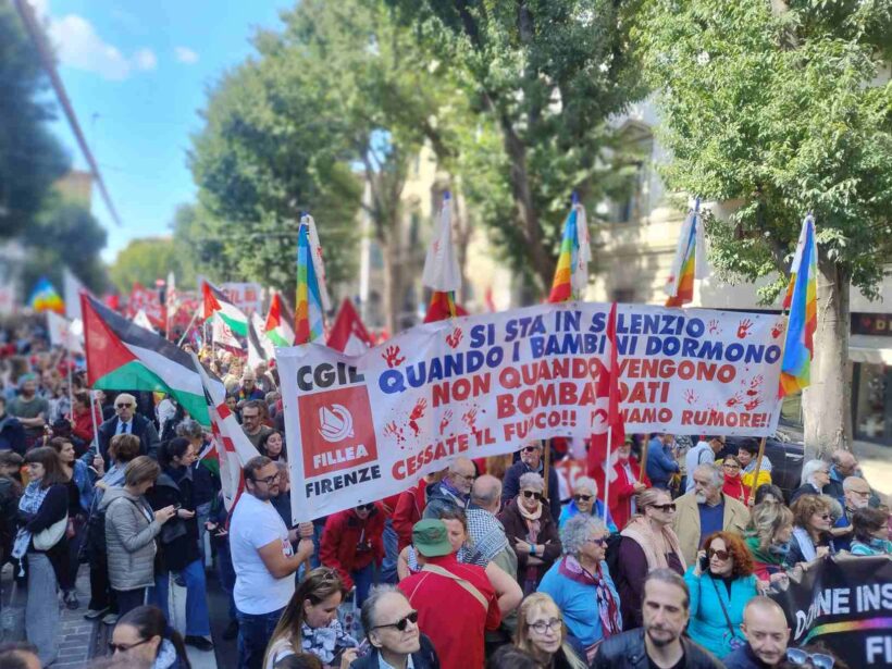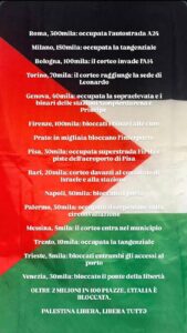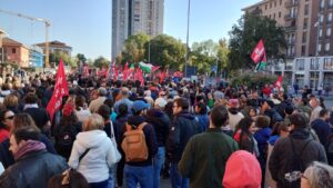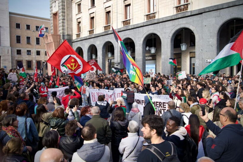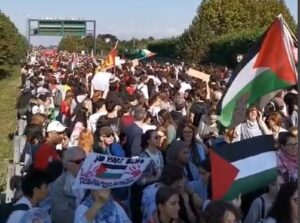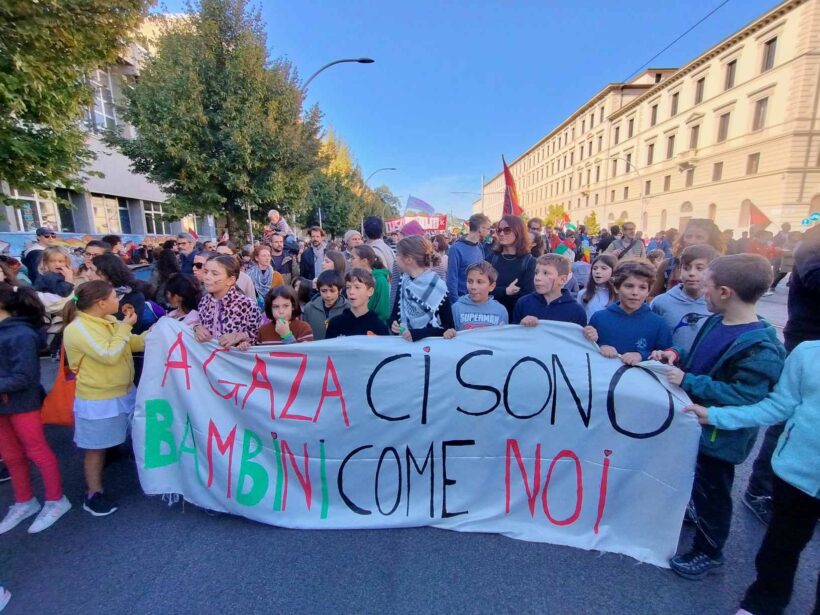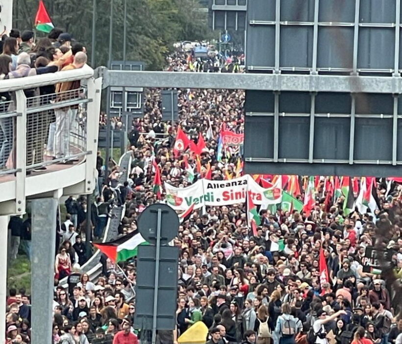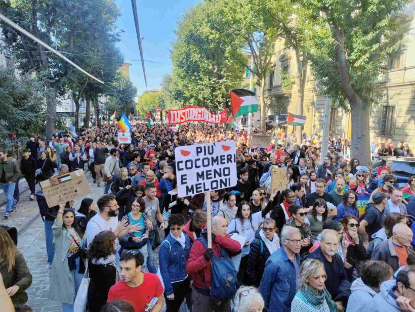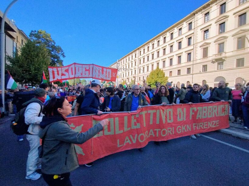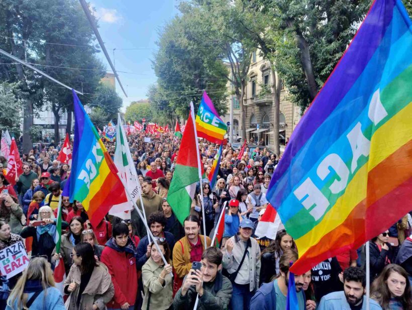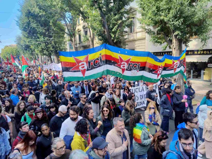 La grève générale pour Gaza, appelée par les syndicats Unione Sindacale di Base USB, Confederazione Unitaria di Base CUB, le Comitati di Base COBAS et la Confederazione Generale Italiana del Lavoro CGIL, a eu lieu ce vendredi 3 octobre dans toute l’Italie. De nombreuses manifestations ont eu lieu à Cagliari, Florence, Milan, Rome, Turin, Sassari, Trieste, Bologne, Bergame, Varèse, Salerne, Naples, Catanzaro, Vérone, entre autres.