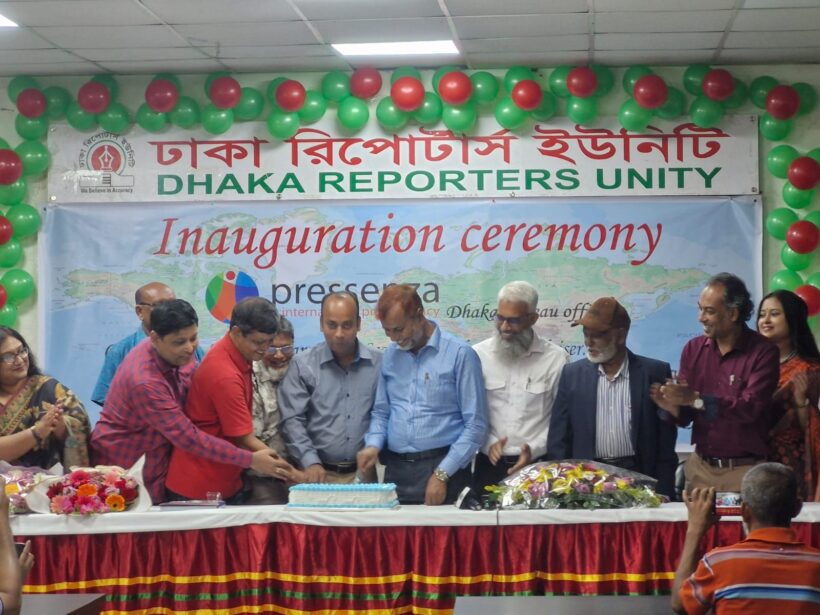 L’agence de presse internationale Pressenza a officiellement démarré ses activités au Bangladesh. L’inauguration du bureau de Pressenza à Dhaka a eu lieu ce lundi 27 octobre à l’auditorium Shafiqul Kabir de l’Unité des reporters de Dhaka (DRU). Muhammad Abdullah, directeur général du Bangladesh Journalists Welfare Trust, a officiellement inauguré le bureau de Pressenza à Dhaka en découpant un gâteau en tant qu’invité d’honneur.