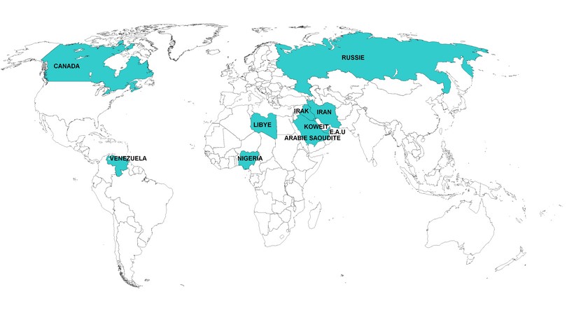Ces chiffres sont approximatifs et calculés avec de petites différences d’années mais donnent une vision générale des disponibilités de l’une des plus importantes sources d’énergie fossile. (https://fr.wikipedia.org/wiki/Liste_des_pays_par_r%C3%A9serves_de_p%C3%A9trole_prouv%C3%A9es)