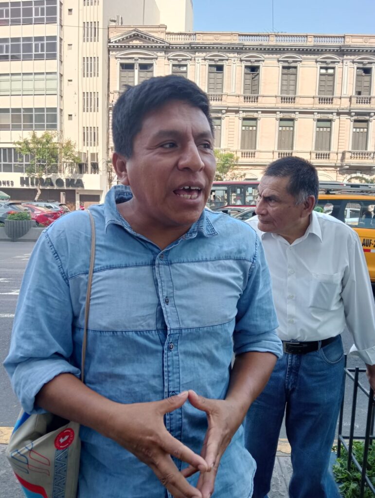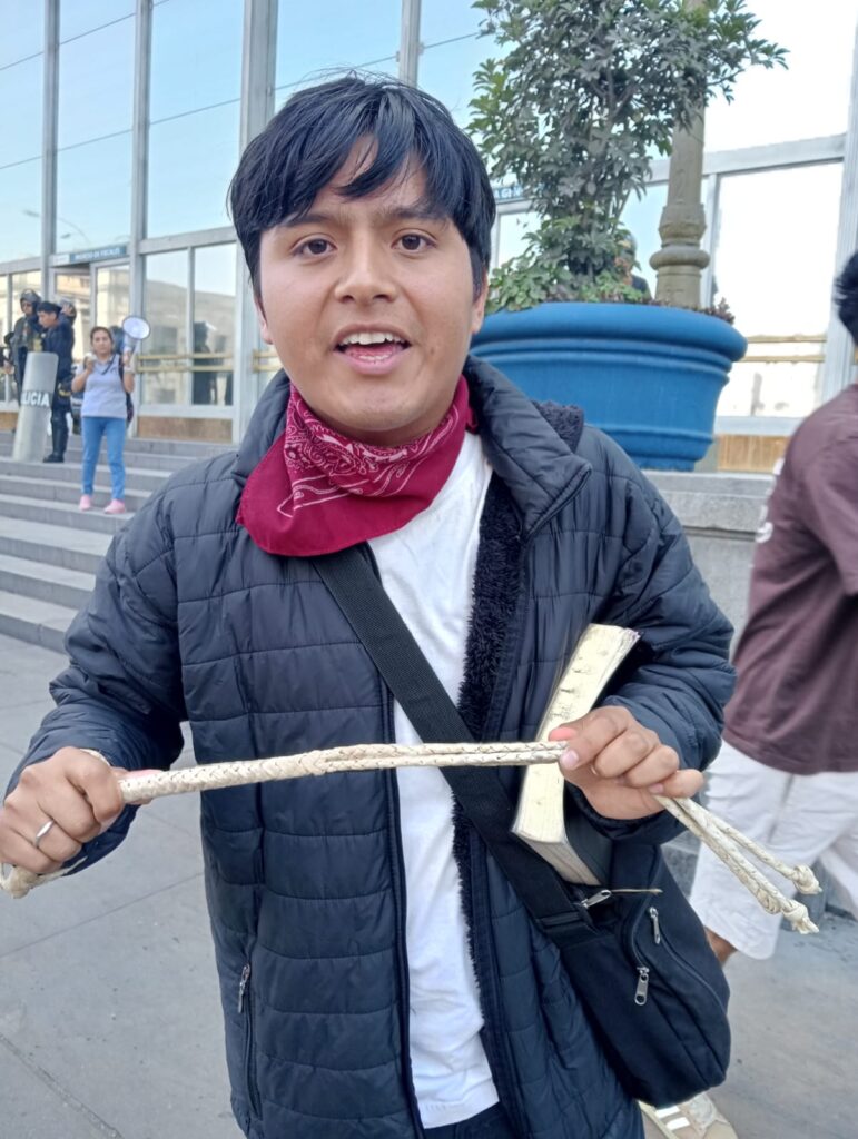 Jean Piers (Collectif Ama Sua Ama Quella) : « Aujourd’hui, en tant que membres de la Génération Z, nous nous joignons à tous les combats. Actuellement, ce sont les corrompus, les criminels en col blanc, qui prennent le contrôle du parquet. Quelle justice pouvons-nous espérer pour notre peuple si les corrompus s’emparent du pouvoir ? C’est pourquoi nous exigeons la réintégration de Mme Delia Espinoza. Le pouvoir de sanction est censé corriger les autorités. Si elles n’ont pas été corrigées depuis l’enfance, nous, les jeunes, sommes là pour le faire. Nous sommes une génération qui le fera ; nous avons le pouvoir, en tant que peuple péruvien. Nous ne pouvons pas laisser les mêmes individus corrompus nous gouverner. »