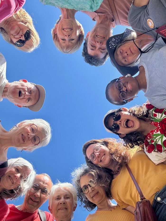 Autour d’un repas, nous avons rencontré Angela, originaire des Pays-Bas qui a rejoint la marche à Pampelune et marche jusqu’à Cahors, et Pierre et Marie-Brigitte qui ont marché jusqu’à Lectoure depuis La Romieu. Deux autres marcheur·euse·s n’ont pas pu marcher suite à un accident, sans gravité.