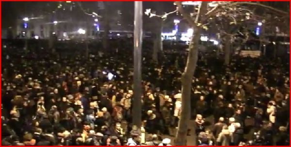 Le rassemblement s’est poursuivi toute la soirée, sur le parvis de la place, avec des veillées autour de bougies.