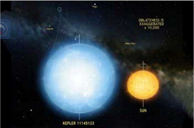 Appliquée à l’étoile en question, Kepler 11145123, la technique a révélé que la différence entre les rayons équatoriaux et polaires de l’étoile est de seulement trois kilomètres, chiffre étonnamment faible par rapport au rayon moyen de l’étoile qui est de 1.5 million de kilomètres. Ce qui signifie que la sphère de gaz est étonnamment ronde.