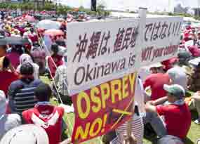 Le leader de la protestation , Akio Nosaka, a qualifié de défectueux les aéronefs Osprey et a censuré le pretexte des bandes militaires et du Gouvernement central basé sur l’affirmation que les exercices dans cette zone, contribuent à alléger le fardeau de la préfecture d’Okinawa, emplacement des avions états-uniens.