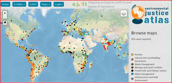 Enfin un outil pour recenser les luttes écologiques et les espaces de résistances ! Ejolt, un réseau d’organisations, d’universités et de laboratoires de recherche sur la justice environnementale, a rendu public le 19 mars un « Atlas mondial » qui détaille plus de 900 conflits environnementaux. Via cette cartographe interactive et participative, il est possible en un clic d’avoir un aperçu à l’échelle mondiale des conflits relatifs à l’énergie nucléaire, à l’eau, à la fracturation hydraulique, au foncier, à la biodiversité, aux hydrocarbures ou à la gestion des déchets. Une recherche sur les méga-projets peut être effectuée par pays, entreprise, produit (huile de palme, gaz naturel, uranium…) ou type de conflits (accès à la terre, déforestation, etc.).