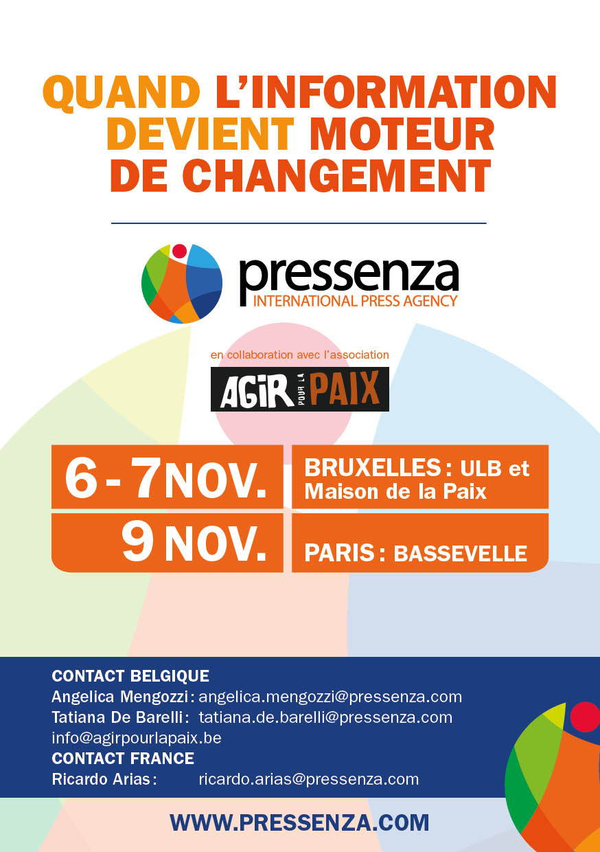 Invitation à participer à la   Rencontre Internationale Pressenza – 6-9 novembre 2025 – Bruxelles-Paris. L’information comme moteur de changement !  Contexte :  Pressenza.com est une agence de presse internationale pour la paix et la non-violence. Tous les participants sont volontaires et…