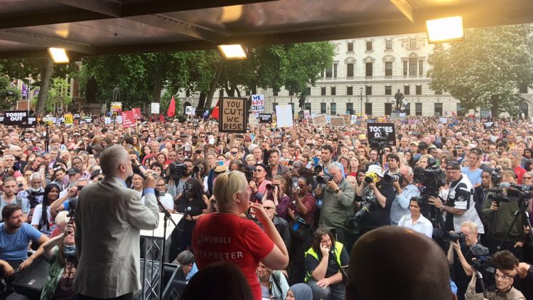 Des milliers de personnes ont marché ce 1 juillet 2017 à Londres pour s’opposer à l’austérité en vigueur au Royaume Uni, situation qui provoque une crise dans les services de santé, l’éducation, la police, les services d’incendie, les services sociaux…