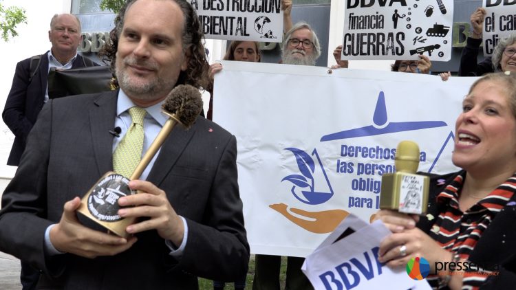 Ce 17 octobre s’est tenue la cérémonie de remise du prix ‘Balai d’Or‘ à la banque espagnole BBVA pour avoir été « la banque qui finance les trafiquants d’armes et les projets à fort impact environnemental et qui tente de mettre…