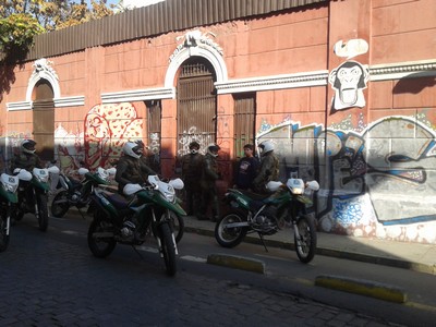 « La photo montre un groupe de policiers qui entourent un jeune pour vérifier son  sac à dos. Lorsque nous avons commencé à prendre des photos et nous nous sommes rapprochés, les policiers ont réagi, très agressifs et menaçants. Ils ont laissé…