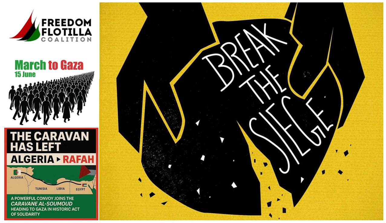 Briser le siège de Gaza par la mer, par la terre, par l’air. La Coalition de la flottille de la liberté, la Marche mondiale vers Gaza et la Caravane Sumud unissent leurs forces
