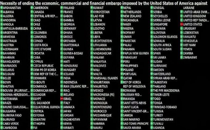 189 pays membres de l’Organisation des Nations Unies (ONU) ont voté ce 1 novembre en faveur de la résolution qui demande la levée du blocus économique, financier et commercial imposé par les Etats-Unis à Cuba depuis presque 60 ans. Il…