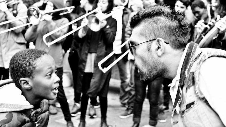Quand des habitants du quartier de la Place des Fêtes et de généreux citoyens organisent un repas chaud et des concerts pour et avec les 580 réfugiés de toutes origines qui squattent depuis plusieurs mois un lycée désaffecté et insalubre…