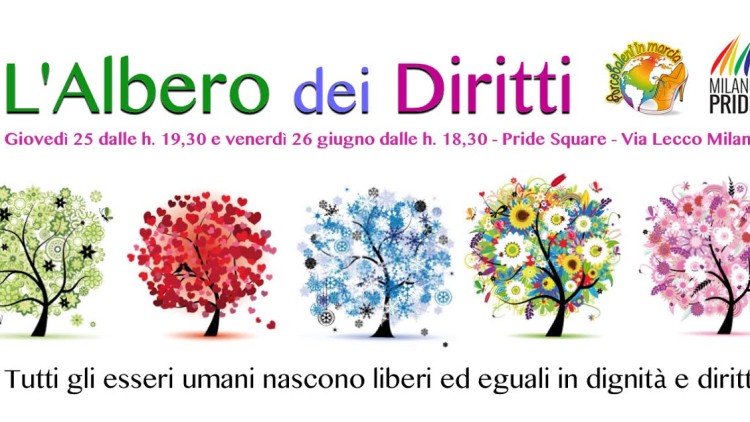 Arcobaleni in marcia presenta: L’albero dei diritti Giovedì 25 giugno dalle h. 19,30 e venerdì 26 dalle h. 18,30 – Pride Square Via Lecco Milano “Tutti gli esseri umani nascono liberi ed eguali in dignità e diritti. Essi sono dotati di ragione e…