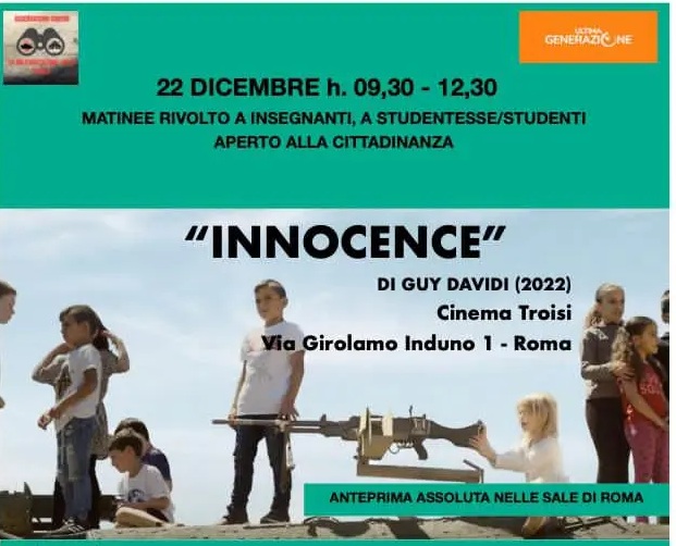 Su iniziativa dell’Osservatorio contro la militarizzazione delle scuole e delle università sarà proiettato in prima assoluta in una sala cinematografica a Roma il docufilm “Innocence” del regista israeliano Guy Davidi.  L’appuntamento è al Cinema Troisi in via Induno 1 il 22 dicembre alle…