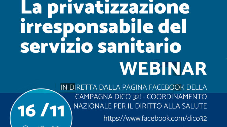 La privatizzazione irresponsabile del servizio sanitario – webinar 16/11/20 dalle 18 alle 20