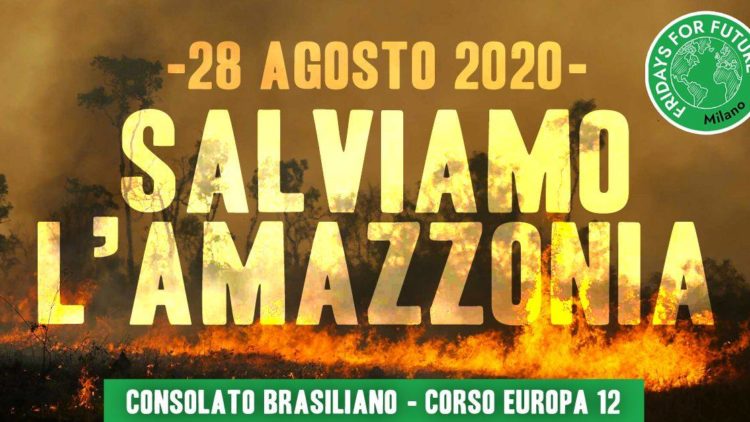 Venerdì 28 agosto 2020 dalle 18 alle 19,30 Largo Dei Bersaglieri, Milano Evento organizzato da Fridays For Future Milano Venerdì 28 agosto alle 18.00 ci troveremo davanti al Consolato del Brasile per chiedere che la foresta amazzonica e i suoi popoli…