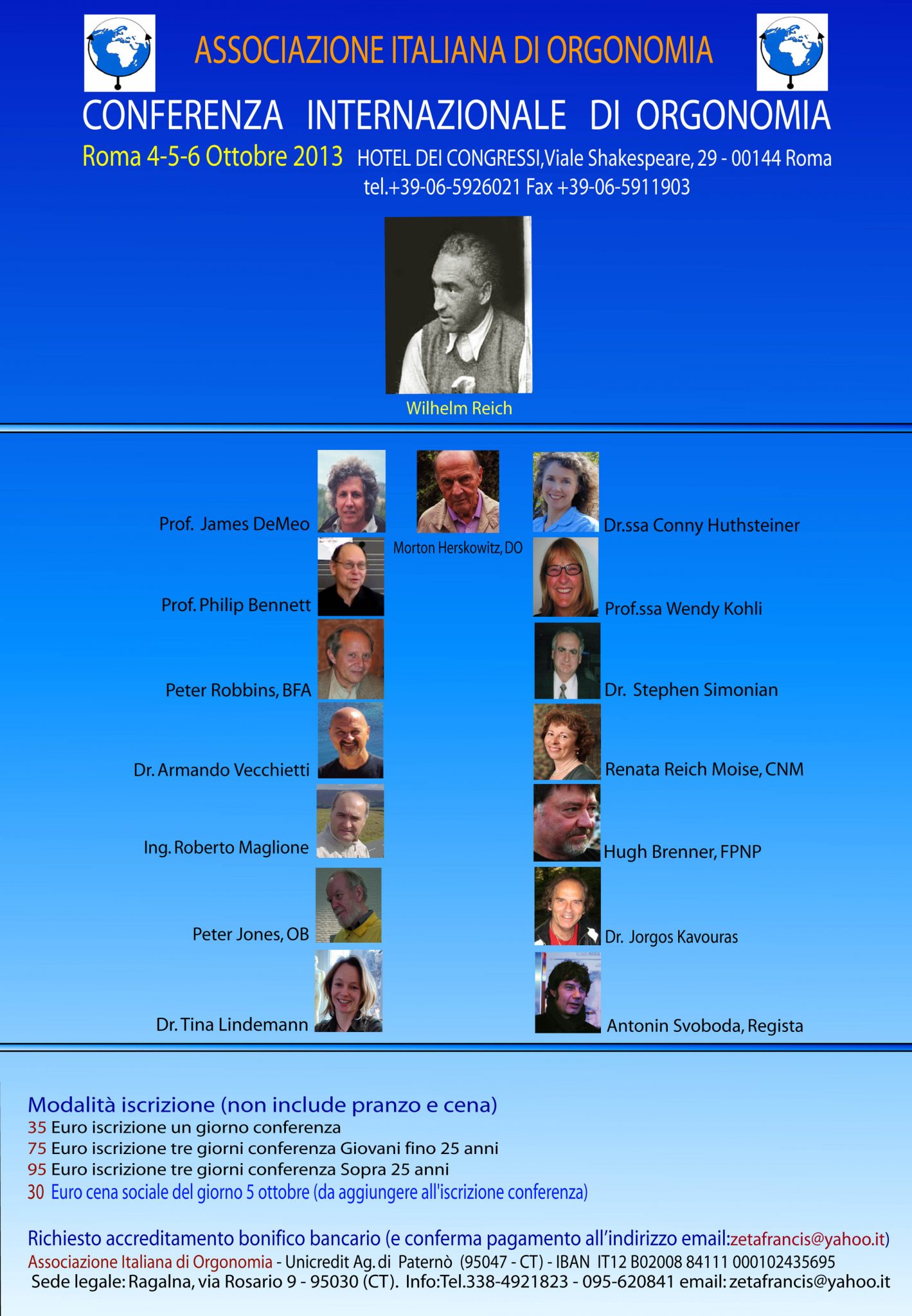 Il prossimo 4-6 ottobre 2013 si terrà all’Hotel dei Congressi di Roma una conferenza Internazionale di Orgonomia, organizzata dalla Associazione Italiana di Orgonomia, focalizzata sulla scienza ideata e sviluppata da Wilhelm Reich agli inizi del secolo scorso. L’assunto fondamentale…