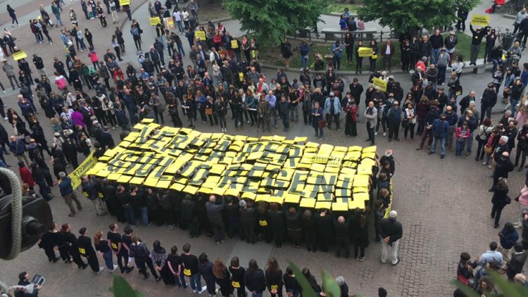 Trecento attivisti di Amnesty International hanno dato vita oggi a un suggestivo flash mob davanti a Palazzo Marino, sede del Comune di Milano, per chiedere ancora una volta “Verità per Giulio Regeni”. Vestiti di nero, reggendo cartelli gialli, hanno composto…