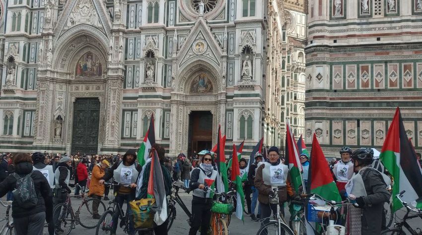 Oggi a Firenze  partendo dalle Cascine alle 11 di stamattina un gruppo di attivisti di Firenze per la Palestina hanno fatto una ” biciclettata” in solidarietà con il ciclista atleta che fu colpito da un cecchino israeliano ed amputato in…