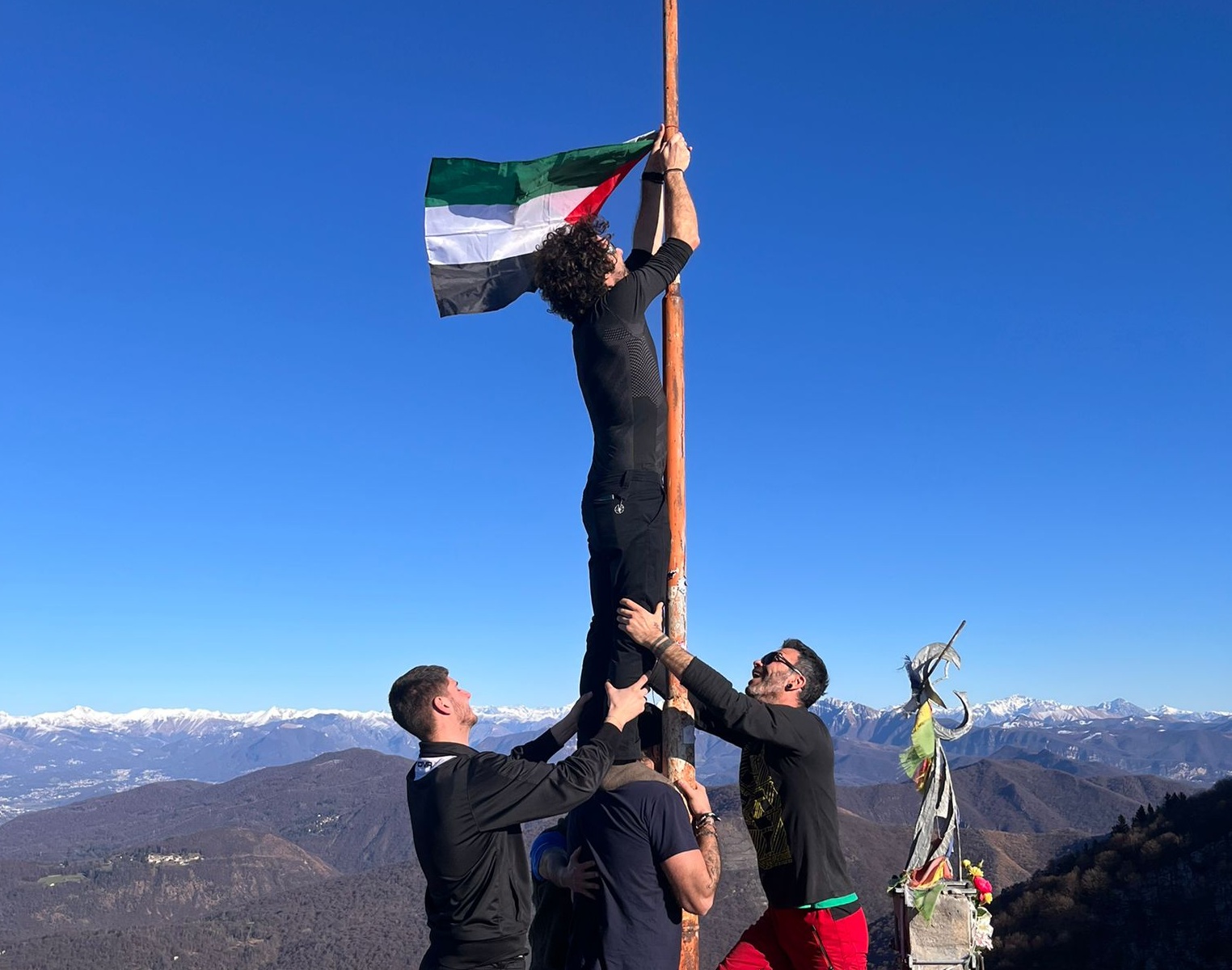 La bandiera della Palestina sulla Punta di mezzo, nelle Prealpi varesine