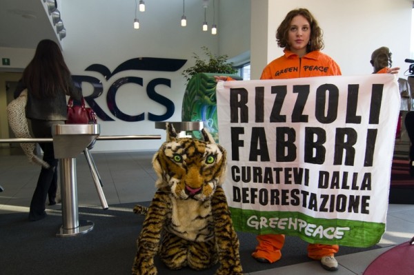 “La nostra terapia d’urto contro la deforestazione ha funzionato.” – afferma Chiara Campione, responsabile della campagna Foreste di Greenpeace, al termine dell’incontro con i vertici di RCS Libri. “A seguito del nostro blitz di questa mattina, in cui le tigri di Greenpeace hanno occupato la reception di RCS Libri, abbiamo avuto un proficuo incontro con i vertici aziendali che erano rimasti finora sordi alle nostre richieste. L’impegno che hanno preso oggi invece è sicuramente positivo: entro la fine del mese verrà organizzato un tavolo tecnico che ha come obiettivo quello di implementare un percorso sempre più virtuoso che garantisca a tutte le case editrici RCS di diventare in tempi brevi “amici delle foreste””.