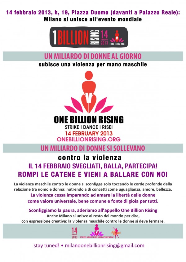 L’appuntamento a Milano è in Piazza Duomo, davanti a Palazzo Reale, giovedì 14 febbraio 2013 alle ore 18.45.