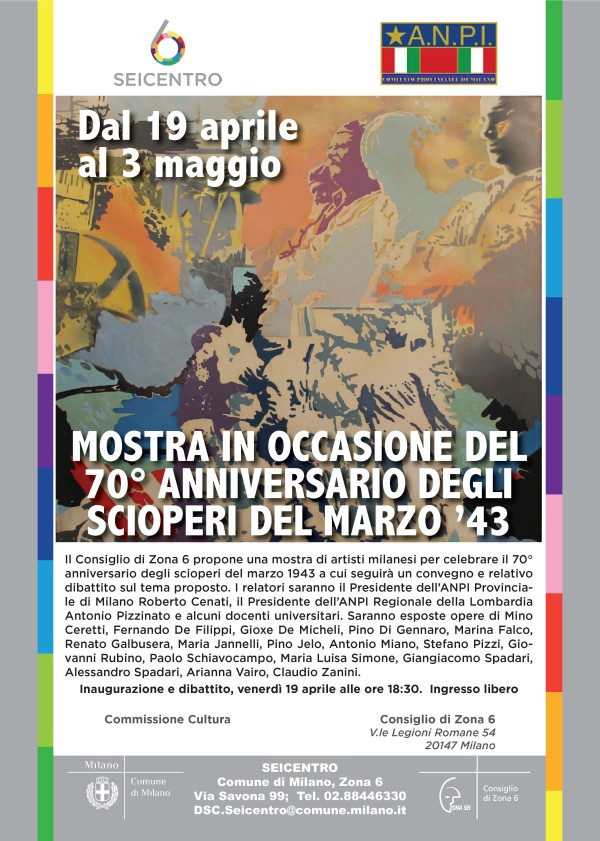 Presso la Spazio Seicentro di via Savona 99 a Milano, Mostra di pittura a cura del Consiglio di Zona 6, dell’Anpi di P.ta Genova e di un Gruppo di Artisti di Brera.