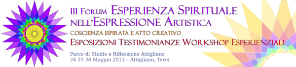 Venerdì 24 Sabato 25 e Domenica 26 Maggio 2013 presso il Parco di Studi e Rflessione di Attigliano, Via Sant’Eugenia, 3 (Terni) si terrà il III° Forum Nazionale “Esperienza spirituale nell’espressione artistica” Coscienza ispirata e atto creativo. Esposizione Testimonianze e Workshop esperienziali