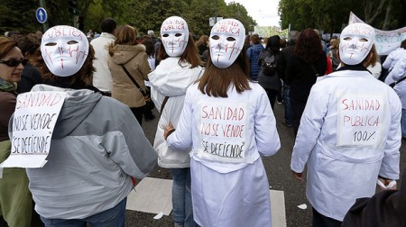 Slogan come “La salute non si vende!” o “Tagliare la sanità è criminale” si leggevano su cartelli e striscioni portati dai manifestanti per esigere dal governo di Mariano Rajoy la fine dei tagli nel delicato settore della sanità.