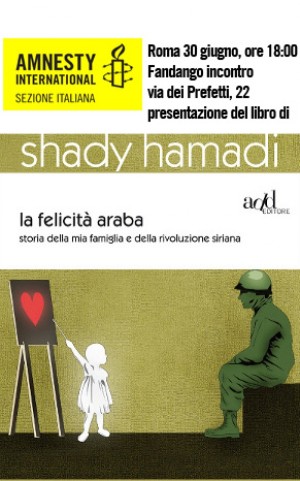 Domenica 30 giugno alle ore 18, presso Fandango Incontro in via dei Prefetti 22, a Roma, Shady Hamadi, attivista per i diritti umani italo-siriano, presenterà il suo libro “La felicità araba. Storia della mia famiglia e della rivoluzione siriana”.