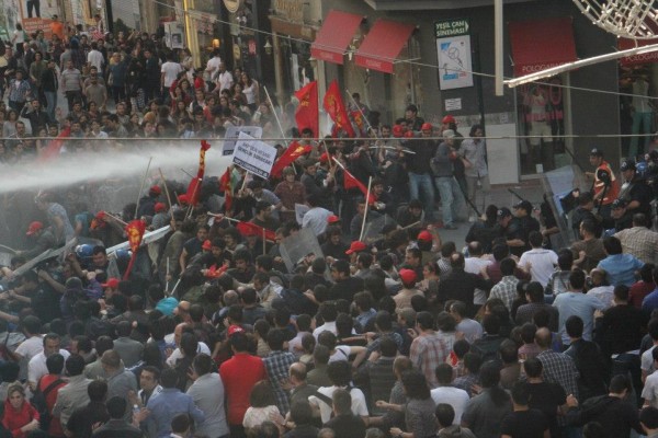 Nonostante il progetto sia già stato approvato da chi di dovere, il permesso per l’abbattimento degli alberi non era ancora arrivato, ma, abusivamente qualche giorno fa gli operai hanno iniziato a radere al suolo con il sostegno della polizia. I manifestanti che protestavano fin dal primo momento sono stati allontanati con i lacrimogeni sparati ad altezza uomo. In giornata grazie ad un lavoro eccezionale di coordinazione il Parco di Gezi si riempie di nuovo di manifestanti, ‘sta volta si dorme anche di notte al parco. Il giorno dopo alle 05:00 di mattina le ruspe iniziano a distruggere gli alberi sempre con il sostegno della polizia. Dopo pochi minuti la polizia oltre a sparare di nuovo lacrimogeni inizia a raccogliere le tende dei manifestanti e le brucia con tutto quello che c’è dentro in mezzo al parco.