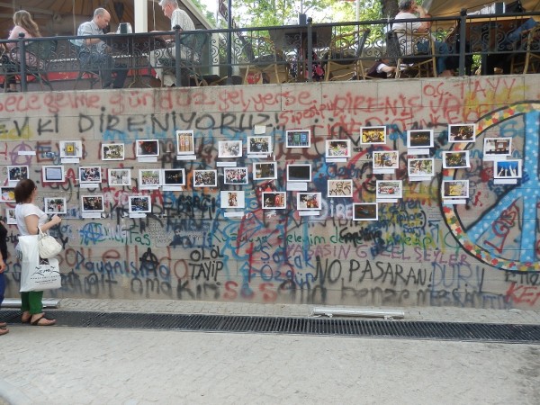 Mentre ci dirigevamo verso Kizilay abbiamo visto un muro ricoperto di foto che rappresentano la storia della protesta a partire dal 30 maggio. Ogni giorno la gente si riunisce per manifestare in silenzio; sono sempre di più e il governo di Erdogan cerca di bloccarli con i lacrimogeni e gli idranti. Loro però ritornano il giorno dopo, pur sapendo che finirà tutto in modo violento. La polizia arresta sempre più persone che se ne stanno semplicemente in piedi leggendo un libro o con le mani in tasca, con la scusa che ostacolano la circolazione. Ad Ankara gli attacchi della polizia a Dikmen, Kennedy Sokak e Tunali continuano fino alle quattro della mattina.