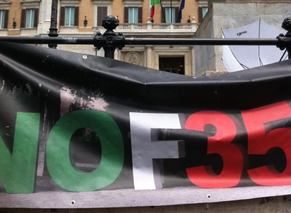 Sono state respinte le mozioni n. 8, a prima firma della senatrice De Petris (Misto-SEL), e n. 57, a prima firma del senatore Casson (PD), con le quali si chiedeva di sospendere immediatamente la partecipazione italiana al programma di realizzazione dell’aereo; di destinare le somme così risparmiate a investimenti pubblici per la messa in sicurezza degli edifici scolastici, per l’apertura di sili nido, per interventi contro il rischio idrogeologico; di procedere a una ridefinizione del modello di difesa italiano in una prospettiva europea. Respinta anche la mozione n. 82 (testo 2), a prima firma del senatore Battista (M5S), che impegnava il Governo ad abbandonare definitivamente il programma per la produzione e l’acquisto di cacciabombardieri; a favorire la riconversione dell’industria bellica; a ridefinire il modello di difesa in base al dettato costituzionale; a utilizzare le somme risparmiate per l’attribuzione del reddito di cittadinanza; a chiedere alla Nato l’immediata rimozione di qualsiasi ordigno nucleare sul territorio italiano.