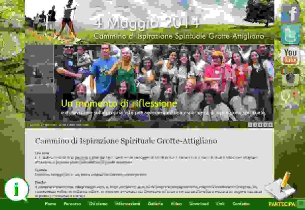 All’indirizzo http://www.ispirazioneincammino.org è on line il sito di presentazione del Cammino di Ispirazione Spirituale Grotte-Attigliano che si svolgerà, per la prima volta Domenica 4 maggio di quest’anno, con l’aspirazione di diventare un appuntamento fisso annuale. L´iniziativa consiste in un percorso a piedi dal Parco familiare del Messaggio di Silo di Grotte S.Stefano fino al Parco di Studi e Riflessione Attigliano attraverso un percorso storico naturalistico di grande ispirazione.