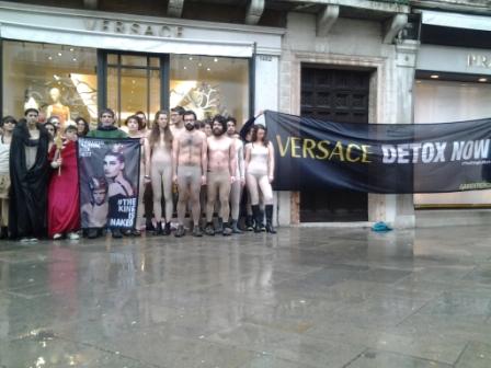 La mobilitazione principale è partita da Roma, dove tre volontari vestiti da imperatore, banditore e cortigiano hanno proclamato un editto che bandisce le sostanze tossiche dai vestiti dei marchi d’Alta Moda. Gli attivisti hanno consegnato una lettera agli store manager di ciascun negozio, nella quale si dettagliano le richieste di adesione all’impegno “Detox”. A Venezia i volontari hanno proseguito l’azione unendosi alla parata del Carnevale.