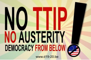 Da stamattina a Bruxelles i movimenti sociali D19-20 Alliance, Alter Summit, Seattle to Brussels Network, European ATTAC Network and Blockupy si sono dati appuntamento dalle 10 davanti alla sede della DG Trade per contestare il negoziato Transatlantic Trade and Investment Partnership (TTIP) che tecnici della Commissione Commercio dell’Unione Europea e del Ministero del Commercio Usa stanno trattando proprio in questi giorni nella più assoluta segretezza.